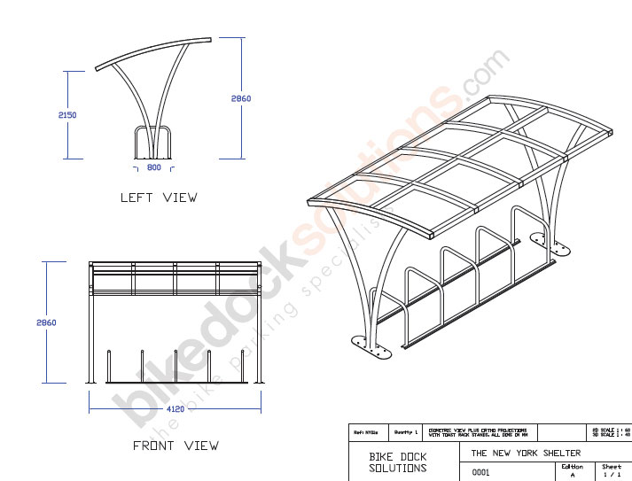 10 Bike Space NYS1: (front) H: 2860mm (rear) H: 2150mm L: 4100mm W: 2753mm 20 Bike Space NYS2: (front) H: 2860mm (rear) H: 2150mm L: 8100mm W: 2753mm