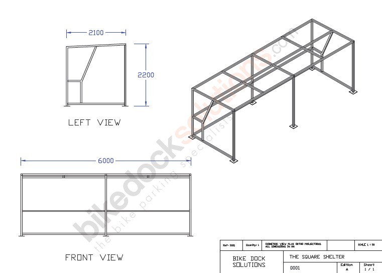 10 Bike Space BSC26 (2124): 4100mm length x 2100mm width x 2200mm height.